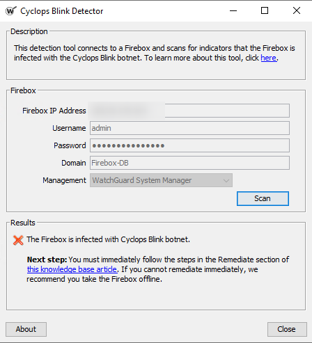 WSM Cyclops Blink Detector fails to scan devices that run Fireware v12.7.2 U2, v12.5.9 U2, or v12.1.3 U8