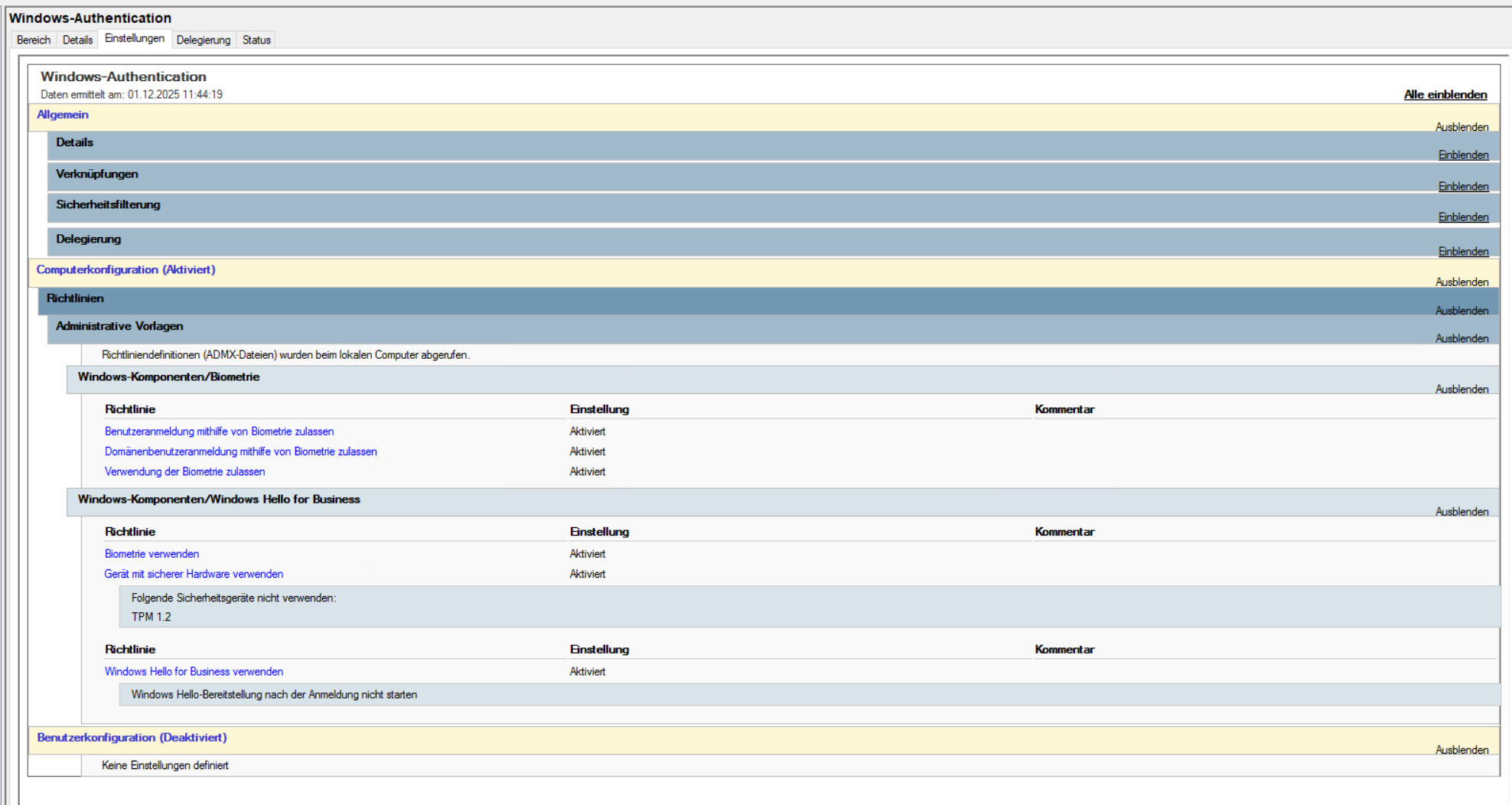 - Voraussetzungen für Gesichtserkennung/Fingerprint mittels GPO konfigurieren