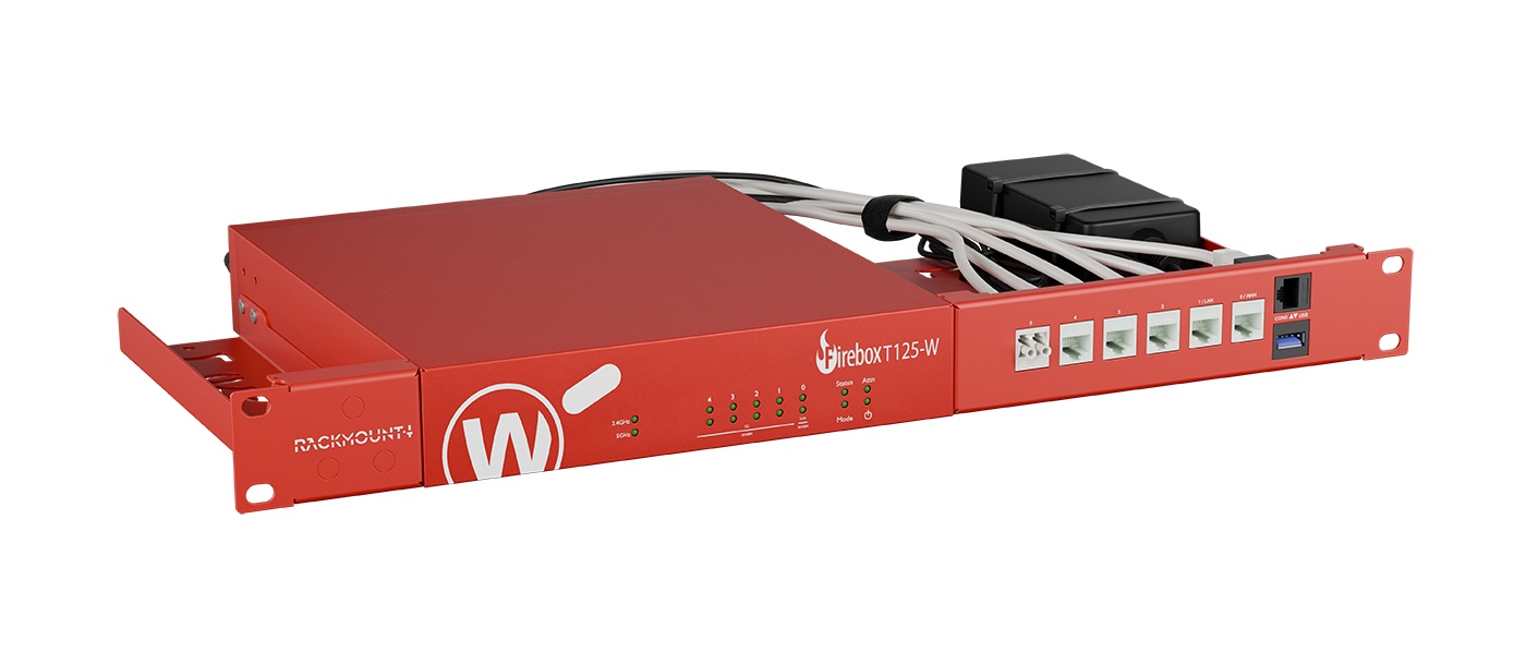 RM-WG-T10 ist ein hübsches und praxistaugliches Rackmount Kit für die WatchGuard Firebox T125/T125-W sowie T145/T145-W. Mit diesem Kit kann dieses eigentlich für den Desktop-Einsatz vorgesehene WatchGuard Modell perfekt in ein 19″-Rack integriert werden. Alle Netzwerkanschlüsse sind von vorne zugänglich.