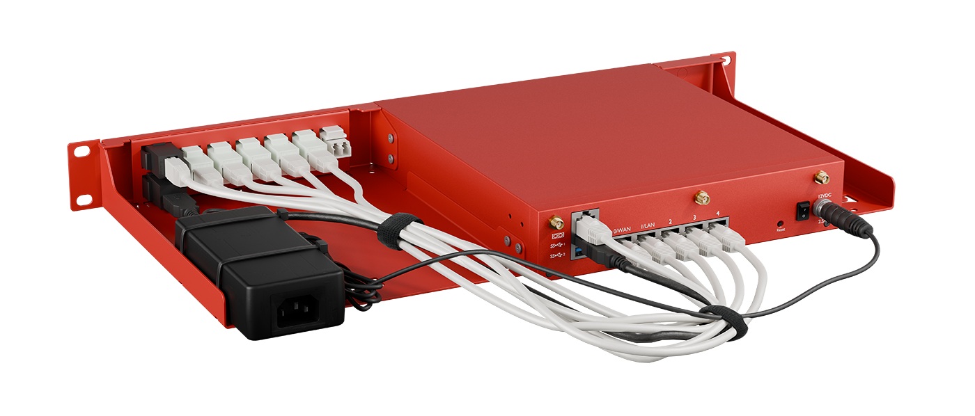 RM-WG-T8 ist ein hübsches und praxistaugliches Rackmount Kit für die WatchGuard Firebox NV5. Mit diesem Kit kann dieses eigentlich für den Desktop-Einsatz vorgesehene WatchGuard Modell perfekt in ein 19″-Rack integriert werden. Alle Netzwerkanschlüsse sind von vorne zugänglich.